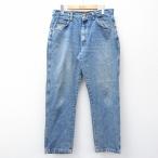 W34/古着 ラングラー ジーンズ メンズ 80s コットン 紺 ネイビー デニム 25nov04 中古 ボトムス ジーパン Gパン ロング パンツ