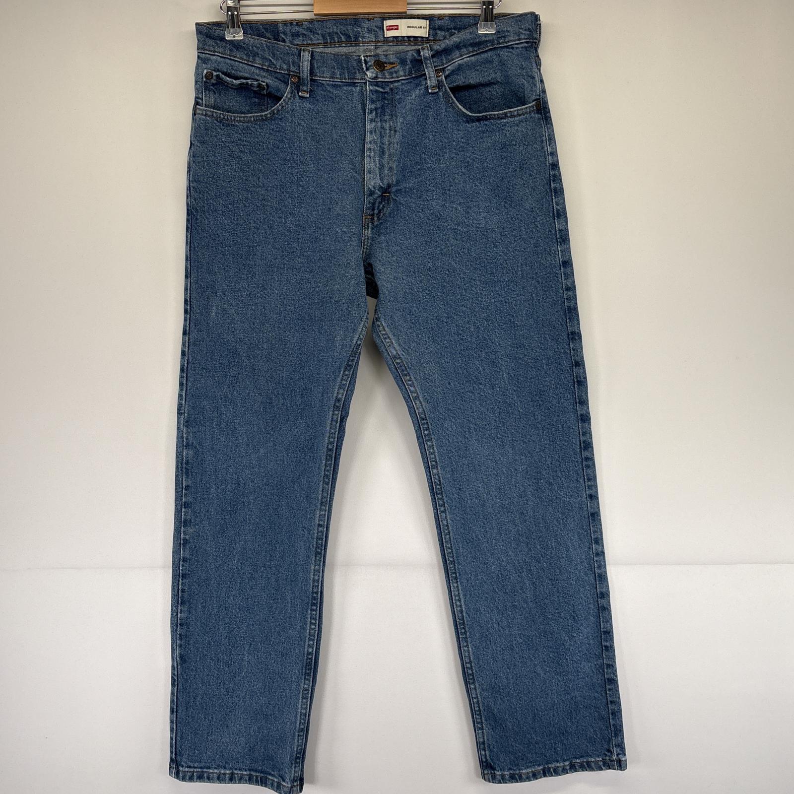 古着 ラングラー Wrangler デニムパンツ ストレート ジーンズ ジーパン 5ポケット 長ズボン ワンポイントロゴ w36 L29 ブルー メンズ 【中古】