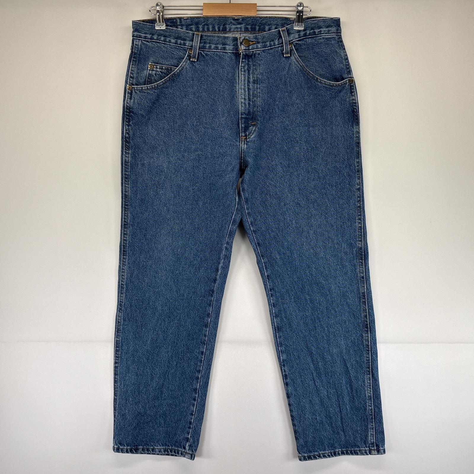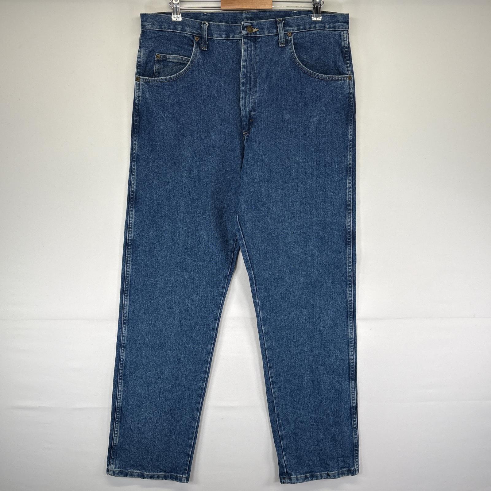 古着 ラングラー Wrangler デニムパンツ ブルーデニム ジーンズ ジーパン ストレート 先染め センタープレス w34 L32 ブルー メンズ