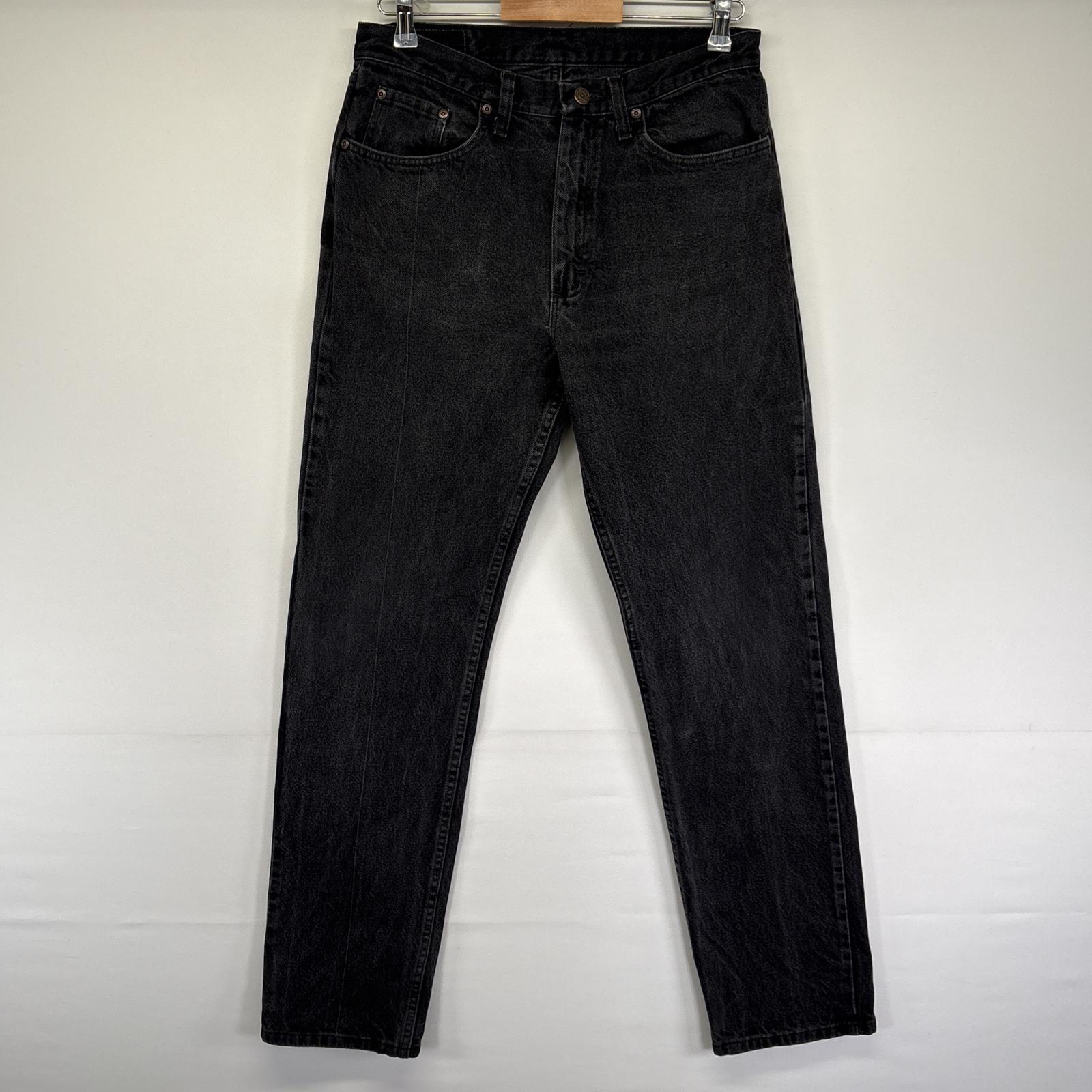 古着 ラングラー Wrangler デニムパンツ ストレート ロング丈 ワーク 5ポケット ジーンズ ジーパン 色落ち w30 L30 ブラック メンズ