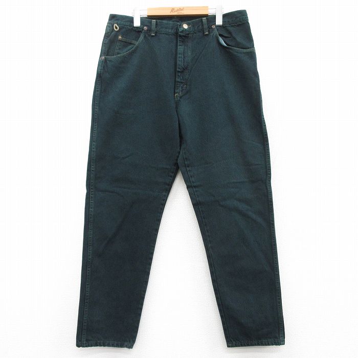 W36/古着 ラングラー ジーンズ メンズ コットン 緑 グリーン デニム 25sep17 中古 ボトムス ジーパン Gパン ロング パンツ