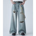 【SALE / 39%OFF】デニムパンツ メンズ レディース フリンジデザイン ジーンズ ワイドパンツ ヴィンテージ ストリート アメカジ カジュアル 韓国ファッション スケーター 古着MIX ブラック ブルー