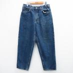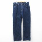 W34/古着 ジーンズ メンズ コットン 濃紺 ネイビー デニム 25oct02 中古 ボトムス ジーパン Gパン ロング パンツ