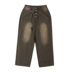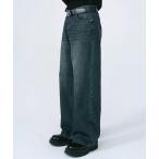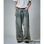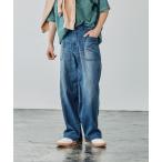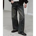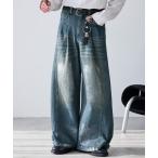 ジーンズ 「HOOK」古着風ウォッシュデニム切り替えワイドパンツ メンズ レディース