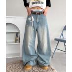 スーパーセール 30%off デニム デニムパンツ メンズ バギーパンツ イージーワイド ワイドデニム ワイドパンツ ヴィンテージウォッシュ ジーンズ ボトムス ロング ワンウォッシュ 加工 オールシーズン ユニセックス ストリート系 男女兼用 M L LL ブラック ネイビー