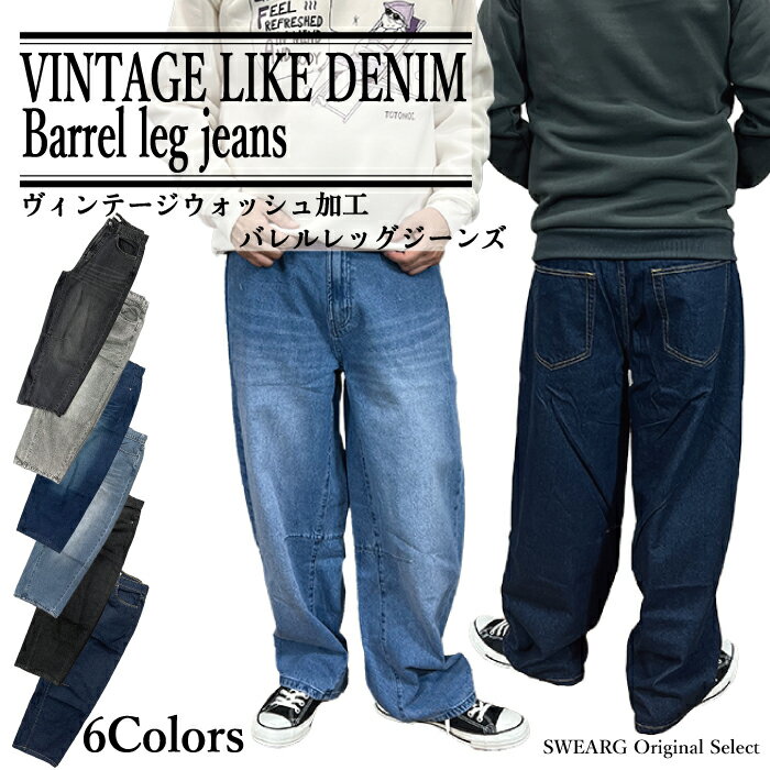 スーパーセール 30%off デニム デニムパンツ メンズ バレルレッグ バレル イージーワイド ワイドデニム ヴィンテージウォッシュ ジーンズ ボトムス ロング ワンウォッシュ 古着加工 オールシーズン ユニセックス ストリート系 男女兼用 M L LL ブラック ネイビー