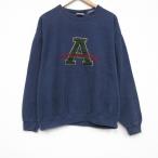L/古着 アリゾナジーンズ 長袖 スウェット メンズ 90年代 90s ビッグロゴ 刺繍 クルーネック USA製 紺 25nov18