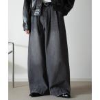 【20%OFFクーポン!4/14(火)限定】HOOK 【HOOK】古着風ウォッシュデニム切り替えワイドパンツ パンツ・ズボン