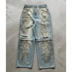 【10%OFFクーポン!4/17(金)9:59まで】improves デニムパンツ メンズ クラッシュ ダメージ加工 ワイドパンツ ストレート ジーンズ ストリート アメカジ カジュアル 韓国ファッション スケーター 古着MIX パンツ・ズボン