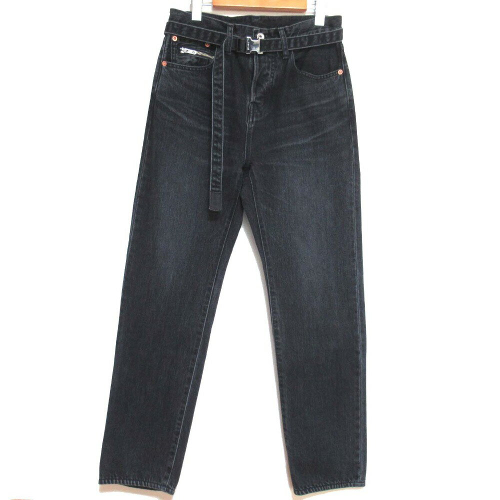 【楽天スーパーSALE20%OFF】【中古】美品 sacai サカイ AD2023 ベルト付き ボタンフライ ストレート デニムパンツ ジーンズ SCM-079 0サイズ ブラック メンズ Luxs ブランド古着のリュクス