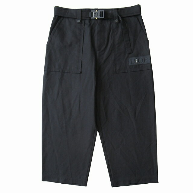 【中古】美品 21AW ディオール Dior × サカイ sacai ロゴ バックル ベルテッド クロップド パンツ スラックス 21TC112A4451 サイズ48 黒 ブラック メンズ ◆4 【ベクトル 古着】 250420