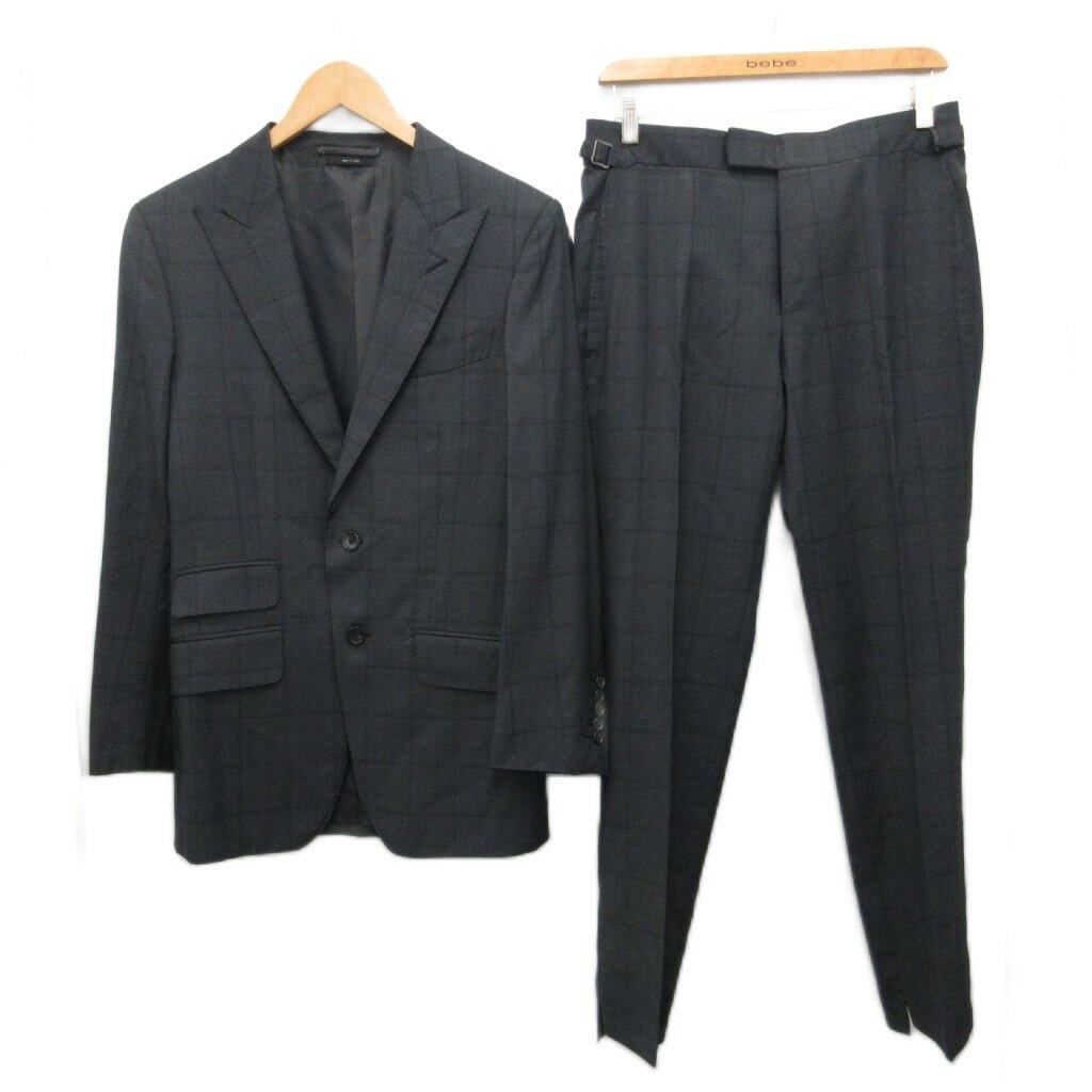 【中古】トムフォード TOM FORD スーツ セットアップ フォーマル テーラードジャケット スラックス パンツ シングル 2B センタープレス テーパード 絹 シルク混 7-44R グレー 21YL4C メンズ 【ベクトル 古着】 251105