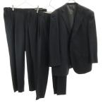 古着 VISARUNO ビサルノ 日本製 ウール ストライプ柄 スーツ 上下 セットアップ M 黒系 メンズ 【中古】 【PD】