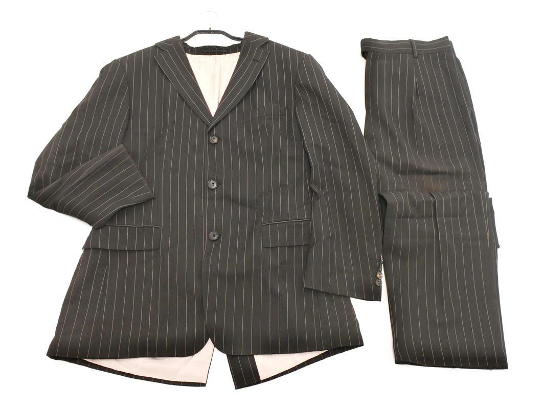 【中古】ダーバン DURBAN basic gear スーツ セットアップ テーラードジャケット ストライプ 黒 98AB6 *A220 メンズ 【ベクトル 古着】 250318