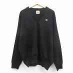 L/古着 長袖 セーター メンズ 80年代 80s 無地 Vネック USA製 黒他 25dec26