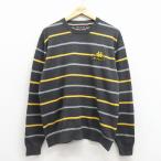 L/古着 Kappa 長袖 セーター メンズ ワンポイントロゴ コットン クルーネック グレー他 ボーダー 25dec05
