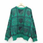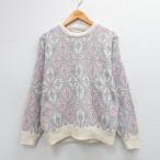M/古着 長袖 セーター メンズ 90年代 90s 総柄 コットン クルーネック USA製 グレー他 25dec27