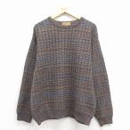 XL/古着 長袖 セーター メンズ メリノウール クルーネック 濃ベージュ他 チェック 25dec27
