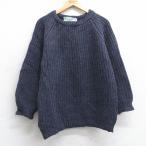 L/古着 長袖 セーター メンズ 90年代 90s 無地 ラグラン ウール クルーネック 紺系他 25dec27