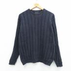 L/古着 ノーティカ 長袖 ブランド セーター メンズ コットン クルーネック 紺系 26jan05