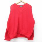 XL/古着 長袖 セーター メンズ ウール Vネック 赤 26jan06