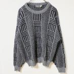 古着 used 〜90s ASHLEY 総柄アクリルニット クルーネックセーター グレー マーブル ビックシルエット XLサイズ