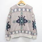 L/古着 セントジョンズベイ 長袖 セーター メンズ 90s ネイティブ柄 ラグ柄 コットン クルーネック 薄ベージュ系他 カーキ spe 25oct27 中