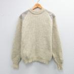 L/古着 長袖 セーター メンズ 90年代 90s ヒジ当て スエード使用 ウール クルーネック イギリス製 生成り 霜降り spe 26feb09