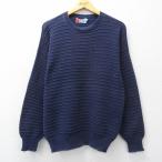 L/古着 長袖 セーター メンズ 90年代 90s コットン クルーネック USA製 紺 26mar11