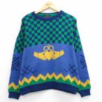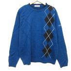 L/古着 長袖 セーター メンズ アーガイル クルーネック 青他 26feb28
