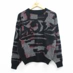 M/古着 長袖 セーター メンズ アクリル クルーネック 黒他 26mar19