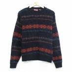 M/古着 ジャンセン 長袖 セーター メンズ フェアアイル アクリル クルーネック 濃紺他 ストライプ 26mar19