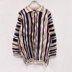 古着 used 90s〜 Bergati COOGI風アクリルニットセーター 3Dニット ハーフボタン ヴィンテージ 総柄 マルチカラー Lサイズ