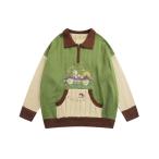 セーター ニット 「HOOK」古着風キャラクター刺繍切り替えポロニット メンズ レディース