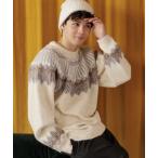 セーター ニット ルーズサイズ 多色柄 古着風ジャガードクルーネックニットセーター 3D ニット メンズ