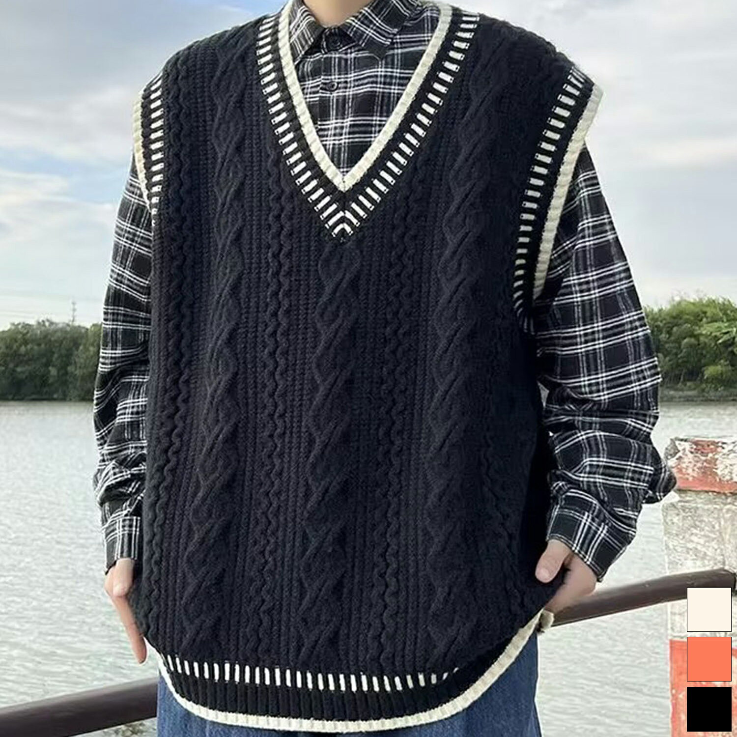 【2025AW】【aimoha】ベスト メンズ ニット Vネックニット セーター ニットベスト ビッグシルエット メンズ レディース オーバーサイズ ユニセックス オルチャン ペアルック 古着風 シンプル