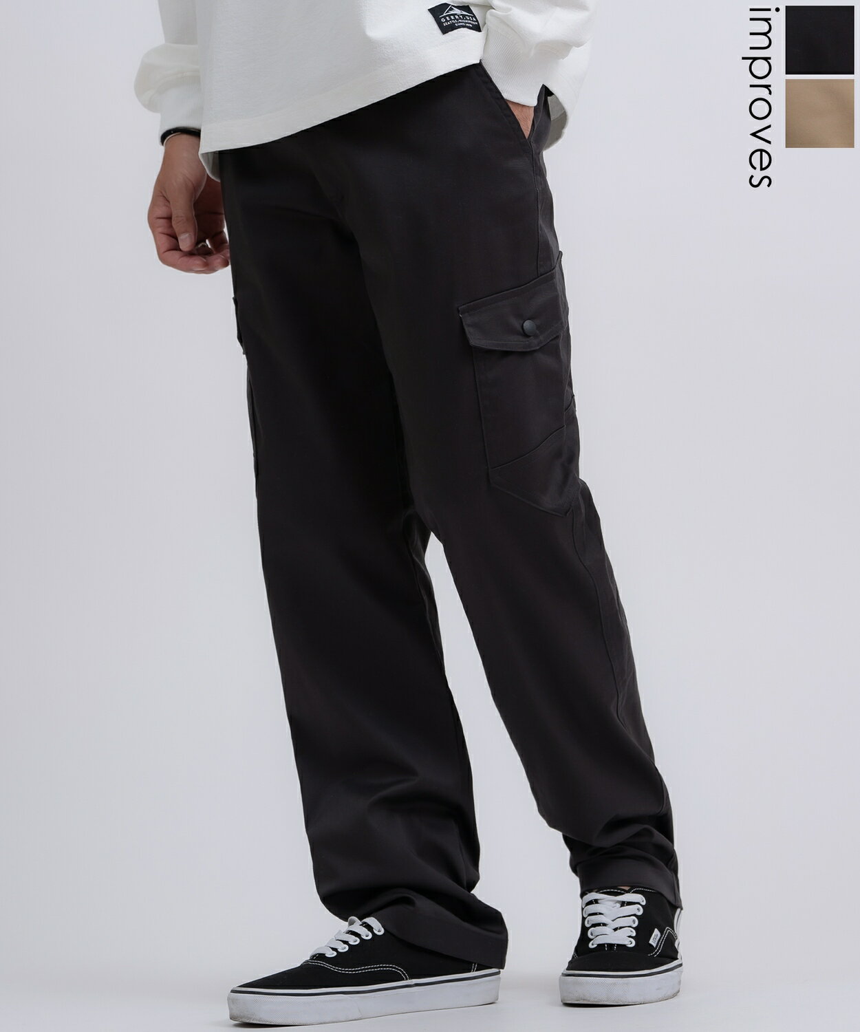 カーゴパンツ メンズ レディース チノパン ルーズシルエット ストレッチ ツイル素材 イージー仕様 ウエストゴム ストリート スケーター アメカジ 古着MIX 韓国ファッション ブラック カーキ