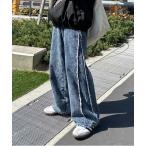 【SALE / 16%OFF】デニムパンツ メンズ レディース サイドラインデザイン ジーンズ ワイドパンツ ヴィンテージ ストリート アメカジ カジュアル 韓国ファッション スケーター 古着MIX ブラック ブルー