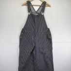 古着 EVER LANE オーバーオール ヒッコリー ワーク 作業着 デニム ビッグポケット ストライプ L ブラック メンズ