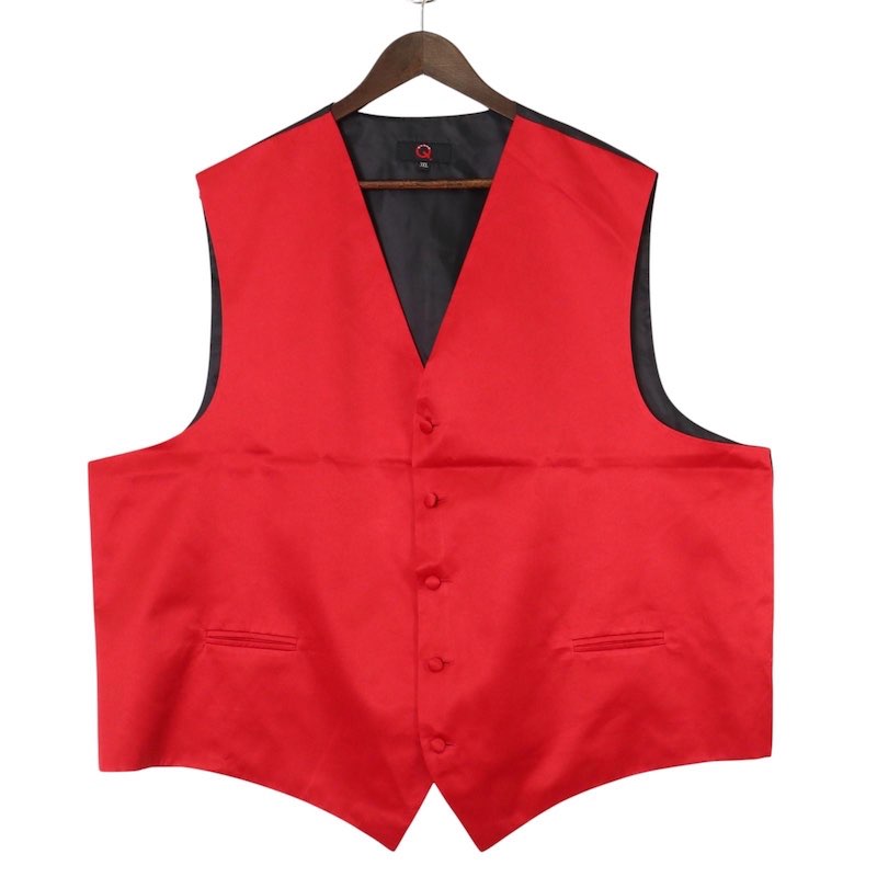 大きいサイズ メンズUS-3XLサイズ BRAND Q シルクスーツベスト レッド ブラック 胸囲約136cm ビンテージ カジュアル フォーマル アメリカ古着 USED BIG hsc-0760n【中古】