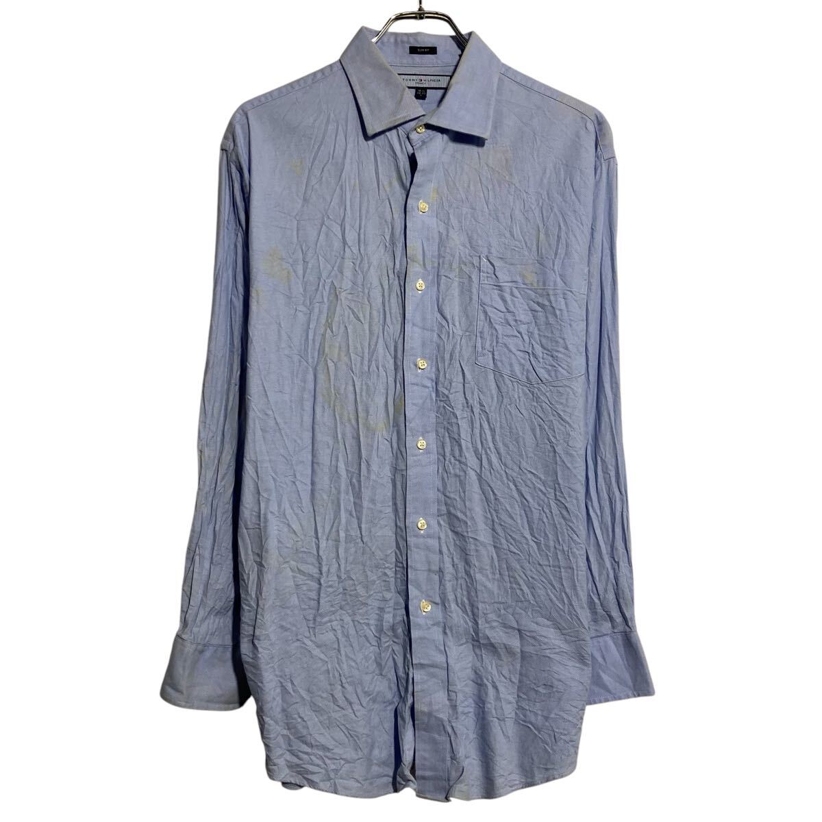 【中古】【古着】 TOMMY HILFIGER 長袖 無地シャツ トミーフィルフィガー L ブルー フォーマル ポケット 古着卸 アメリカ仕入 a612-6834