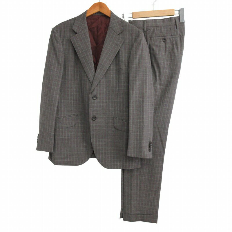 【中古】スキャバル SCABAL 最高級 英国製 オーダースーツ SUPER100's ウール 2B シングル 本切羽 総裏 セットアップ チェック柄 フォーマル ビジネス ボルドー裏地 グレー 約M-L STK メンズ 【ベクトル 古着】 250812