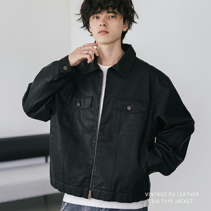 Rocky Monroe Gジャン 3rd PUレザー メンズ レディース ブルゾン トラッカージャケット ライダース アウター ミリタリー 合成皮革 オーバーサイズ ビッグシルエット ゆったり ルーズ リラックス ヴィンテージライク 古着 フェード 韓