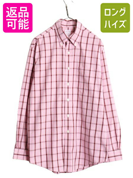 ブルックスブラザーズ チェック 長袖 シャツ メンズ L 程 Brooks Brothers 346 ポケット付き ワイシャツ 長袖シャツ コットン ノーアイロン| 古着 中古 ブルックス チェックシャツ コットンシャツ Yシャツ ポケット付き レギュラーフィット ビジネス シワになりにくい ピンク