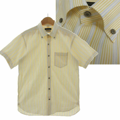 【中古】ダーバン DURBAN シャツ ワイシャツ イタリア製生地 ボタンダウン 胸ポケ 半袖 袖ダブル 日本製 コットン ストライプ イエロー 黄色 ホワイト 白 ブルー 青 L メンズ 【ベクトル 古着】 250906