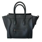 セリーヌ CELINE ラゲージ ミニショッパー ドラムドカーフスキン ハンド トート バッグ 黒ブラック ブランド古着ベクトル 中古☆AA★▲2602