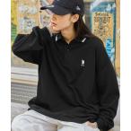 【SALE/80%OFF】HOOK HOOK -original-/古着風フリンジ刺繍編み上げポロ襟スウェット アイモハ トップス スウェット・トレーナー ホワイト ブラック