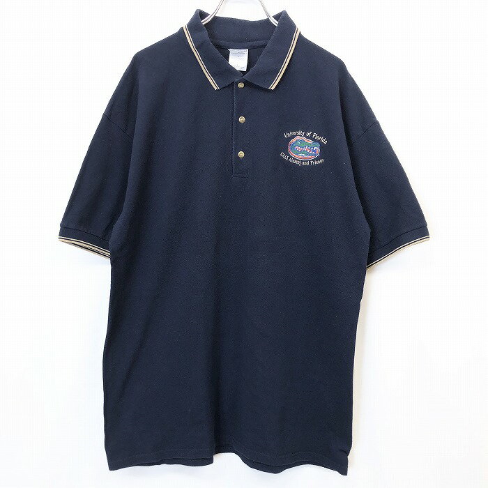 【当店スーパーSALE!! \★30%OFF★/対象商品|3月4日(水)20時00分〜3月11日(水)01時59分まで】【中古】GILDAN ギルダン L メンズ インポート古着 ポロシャツ 鹿の子 カットソー カレッジ刺繍 ワニ 半袖 ビッグシルエット 綿100% ネイビー 紺