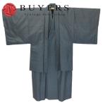 中古 着物セット 羽織 アンサンブル 本場大島紬 正絹(金銀糸除く) ブルー ブラック 襦袢付き 和装 呉服 和服 きもの メンズ 男性