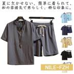 メンズ セットアップ 部屋着 上下セット リネンシャツ ショートパンツ Vネック 甚平 パジャマ ルームウェア 綿麻 キーネック 和服 涼しい 男性 夏 ホームウエア 甚兵衛 半袖 寝巻き 夏用 送料無料 和風 じんべい